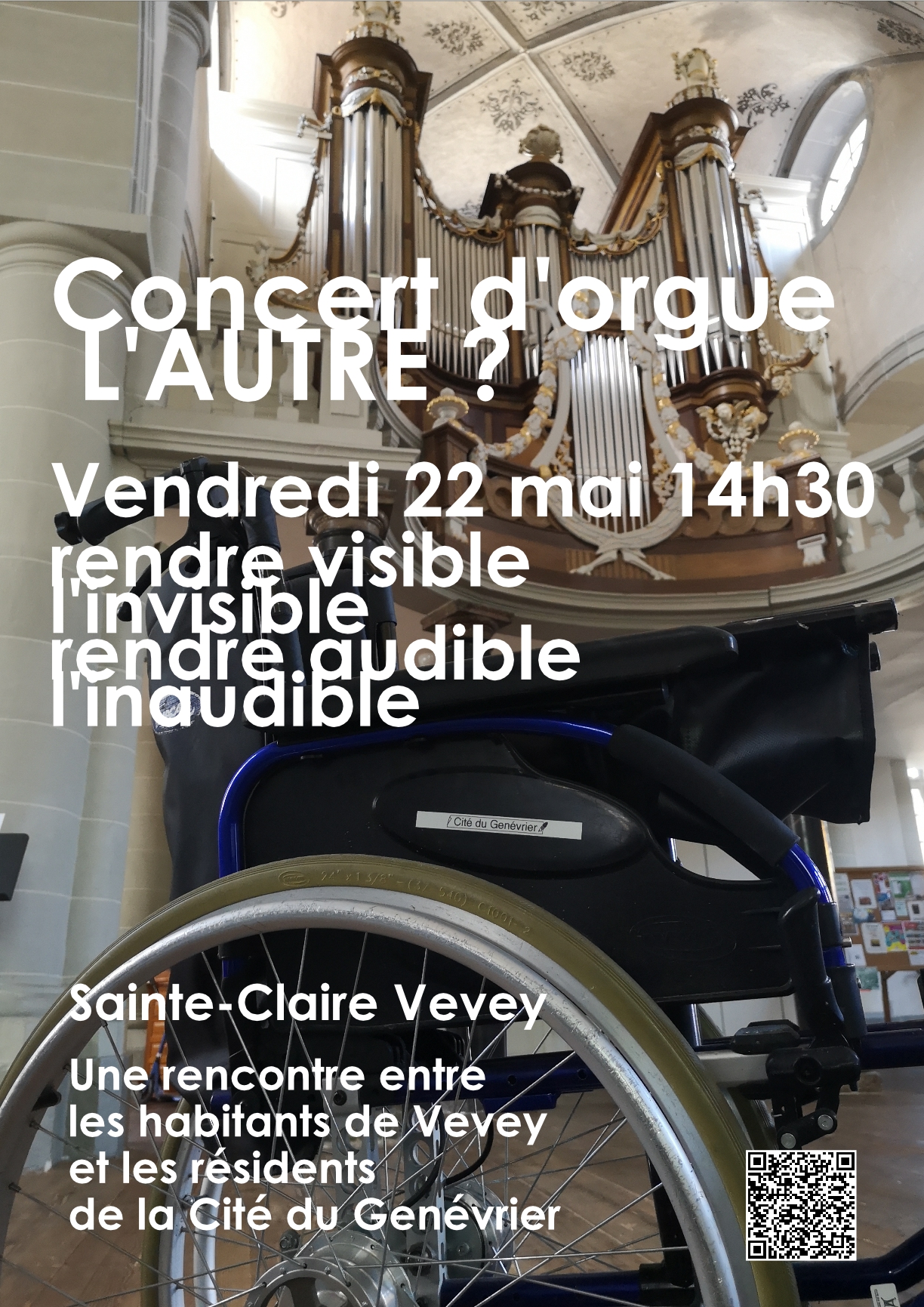 Vendredi 22 mai, 14h30, concert d’orgue, Daniel Chappuis, dans la cadre de l’exposition « L’AUTRE? Comment rendre visible l’invisible »